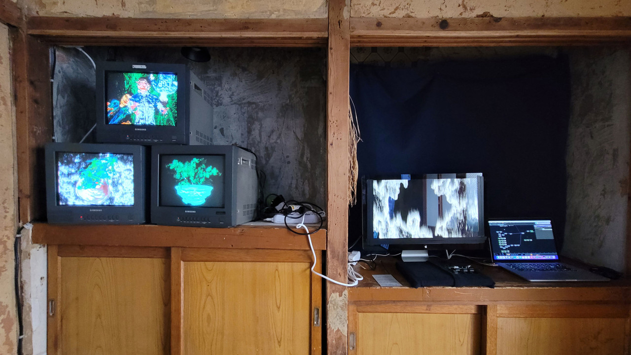 This exhibition is presented as part of the Chungnam Arts & Culture Foundation’s Interdisciplinary Arts Support Program and is curated by artist Kim Hyeongsoo as a three-person exhibition at Gallery Surichi in Gongju. Within the renovated hanok space, various works mediated through digital displays are presented. Visitors can wear a VR headset to experience a place constructed by the artist, while the VR work The Objet is also projected onto the wall so that viewers without a headset may still feel immersed in the sensory field of the work. In addition, the participating artists present their research on moving painting what they refer to as Time Painting. The exhibition includes a range of formats such as CRT-based installations, interactive works, and pencil drawings by Kim Hyeongsoo.